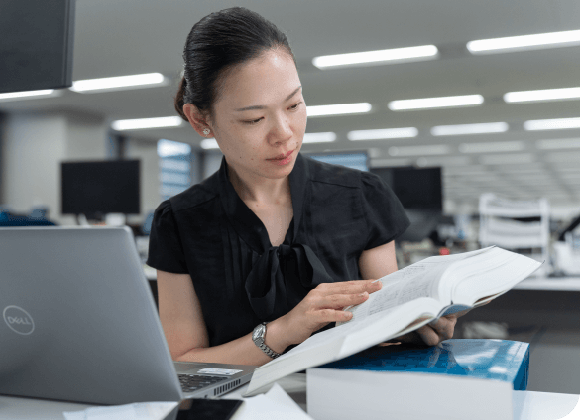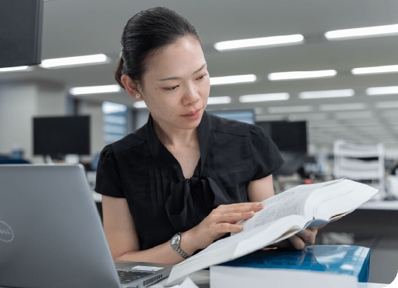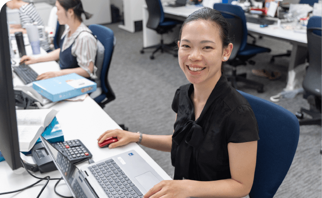物事に打ち込み何かを極めたい、と思うタイプの私が配属となったのが、大阪輸出通関センターでした。私は、すぐにこの専門性の高い仕事に惹きつけられました。けれど入社当初は、膨大な書類を次々と作成し、申告手続きを進めていく先輩の姿に圧倒される日々。それでも、「国家資格である通関士になる!」と目標を決め、講座を取ったり、社内の模擬試験も受けて、仕事終わりにカフェで勉強したりと頑張り抜き、見事、合格を手にしたのです。